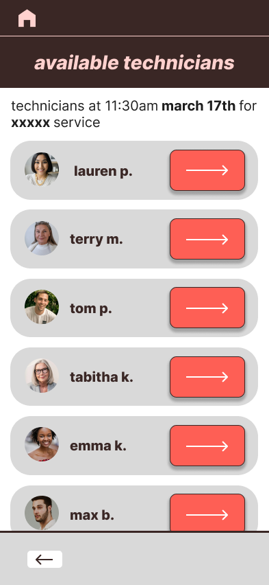 These low-fidentlity prototypes allowed me to start adding color to further direct users how to progress through the app. A bright red color was added to all Call-To-Action buttons that moved the user onto the next page.